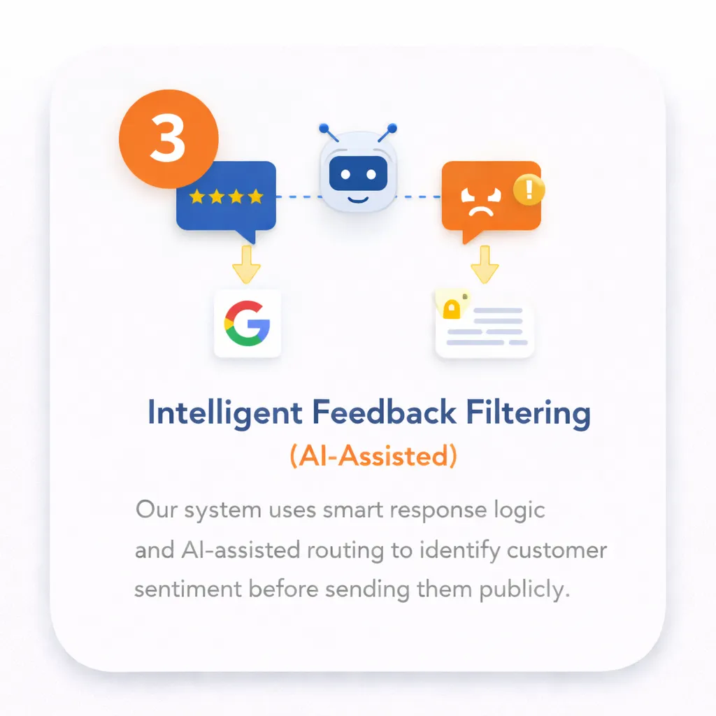 Our system uses smart response logic and AI-assisted routing to identify customer sentiment before directing them publicly.